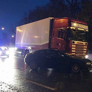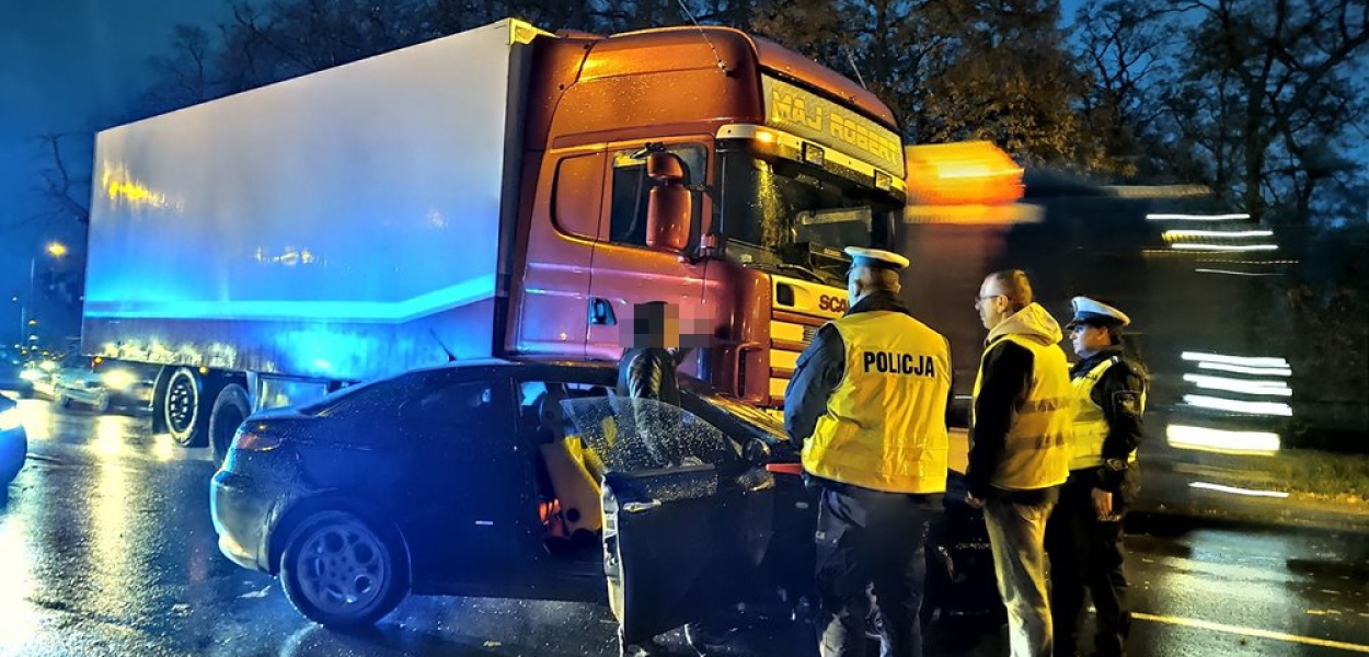 Kolizja na rondzie Konstytucji 3 Maja, gdzie są ogromne korki. Kobieta jechała alfą romeo od strony ulicy Sikorskiego. I wymusiła pierwszeństwo - wjeżdżając wprost pod tira, który jechał środkowym pasem ronda.