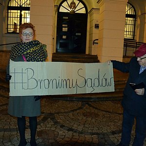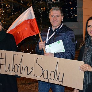 - Protestujemy w sprawie projektu ustawy tzw. kagańcowej - próbującej nałożyć ograniczenia dla sędziów. Te propozycje to nic innego jak powrót do stalinowskiej ustawy obowiązującej w Związku Radzieckim. To tam nakładano takie ograniczenia dla sędziów. Nie możemy się na to godzić, bo to pokazuje, w którym kierunku rząd PiS-u chce nas prowadzić - wołał Jacek Zahorski, który skrzyknął ludzi.