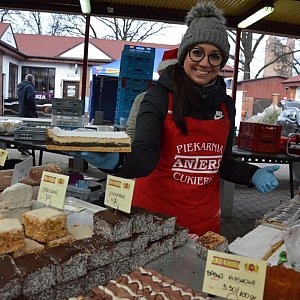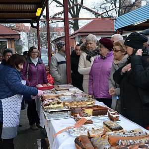 Wyroby mięsne przyjechały spod Żagania, z gminy Kotla sery i stroiki. Jest też jemioła, a pod nią nie brakuje zakochanych. A koło gospodyń wiejskich z Serbów na tę okazję przygotowało bombki. Jarmark potrwa do godz. 14.