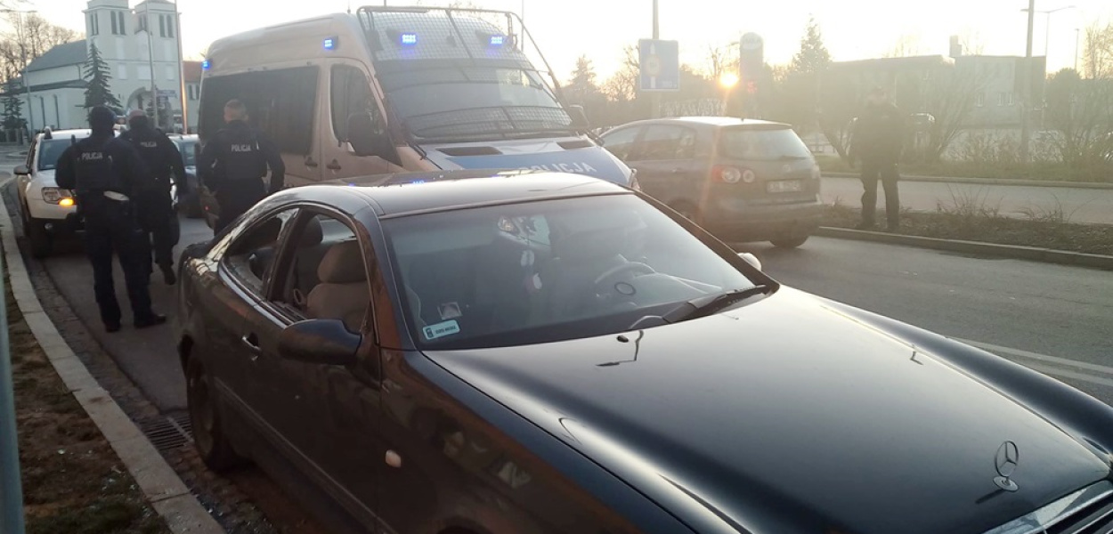 Akcja była na szczęście krótka i szybka. Mercedesa policjantom udało się zatrzymać już po kilkuset metrach, w rejonie ul. Przemysłowej. Jednak to nie był koniec problemów, gdyż... osoby, które były w środku, zabarykadowały się przed policjantami i nie chciały otworzyć auta. Trzeba było powybijać szyby, aby wyszły.