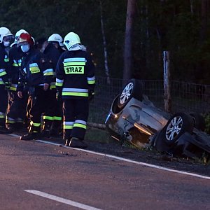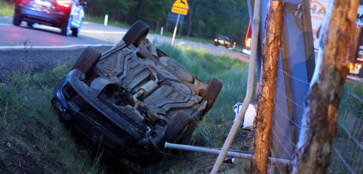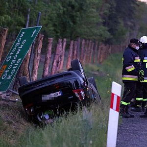 Z jej relacji wynika, że spanikowała, wpadła w poślizg i wypadła z drogi. Ścięła drogowy znak. Dachowała. Na miejsce pojechały zastępy OSP z Kotli i PSP z Głogowa. W tym czasie kobieta opuściła auto o własnych siłach. Poszkodowana nie odniosła większych obrażeń. Ruch jest tam utrudniony.