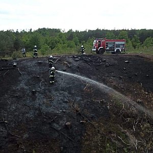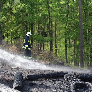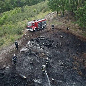 Spłonęły dwie duże hałdy drewna składowane na jednym ze szczytów Wzgórz Dalkowskich. Na miejsce pożaru udało się dojechać tylko jednemu zastępowi strażaków - OSP Gaworzyce. Mieli niedużych rozmiarów samochów, który świetnie poradził sobie w terenie.