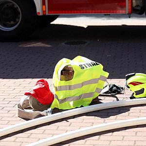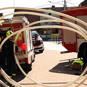 Tradycją jest, że w takich uroczystościach biorą udział wszystkie OSP z gminy. I byli też strażacy z Jaczowa, Bądzowa i Jerzmanowej. Nie mogło zabraknąć bramy ze strażackich węży oraz przecięcia jednego z nich na pniu. Panna młoda musiała jednak poszukać toporek w... wozie strażackim. W tej pięknej białej sukni! A mąż przeciął wąż. Życzymy Wam dużo szczęścia i udane weselnej zabawy.