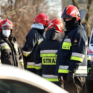 Na miejscu jest straż pożarna i policja. Ruch jest tam utrudniony.