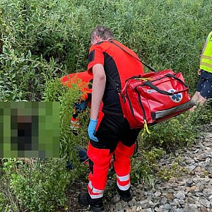 Mężczyzna spadł z nasypu kolejowego. Natychmiast na miejsce wezwano pogotowie ratunkowe i policję. - Miał dużo szczęścia, żyje. Był przytomny. Prawdopodobnie był pod wpływem alkoholu - opowiada nam Kamil, który udzielał mu pierwszej pomocy. Poszkodowany 43-latek został zabrany karetką na sygnale do szpitala.