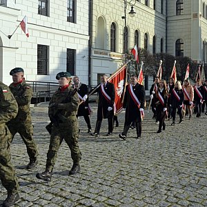 Powiatowe obchody święta 11 listopada otworzyła msza święta w kościele Bożego Ciała. Następnie głogowianie wyruszyli spod ratusza na uroczystość pod Pomnik Dzieci Głogowskich. Kolumnę prowadziła Orkiestra Zakładowa Huty Miedzi Głogów. Po odśpiewaniu hymnu państwowego okolicznościowe przemówienie wygłosił starosta głogowski Jarosław Dudkowiak, gospodarz tej uroczystości. - 103 lata temu, 11 listopada 1918 roku, Polacy udowodnili światu, że duch narodowy silniejszy jest niż wszelka przemoc przeciwko niemu kierowana. Był to dzień, w którym ziściły się marzenia i zwieńczone sukcesem zostały wysiłki wielu pokoleń naszych rodaków dążących do niepodległości naszego państwa - powiedział. Program artystyczny zaprezentował zespół Magia folkloru i młodzież z Zespołu Szkół Ekonomicznych. Apel pamięci odczytał ppor. Kamil Reinholz. Żołnierze głogowskiego batalionu oddali salwę honorową. Wieńce i wiązanki kwiatów pod pomnikiem złożyły kolejno liczne delegacje, od związków i stowarzyszeń kombatanckich, władz samorządowych, służb mundurowych po posłów i partie polityczne.