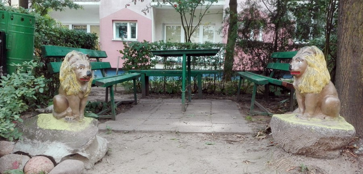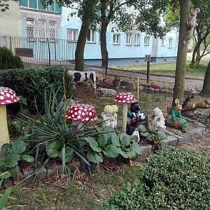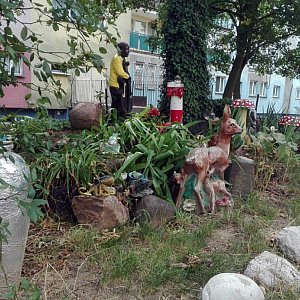Wygląda jak z bajki, a znajduje się pomiędzy blokami na ul. Kosmonautów Polskich. Ogródek wypełniony kolorowymi rzeźbami przyciąga uwagę przechodniów.