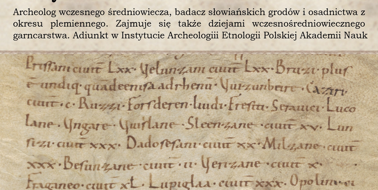 Prelekcję wygłosi dr Krystian Chrzan – archeolog wczesnego średniowiecza, badacz słowiańskich grodów i osadnictwa z okresu plemiennego, zajmujący się również dziejami wczesnośredniowiecznego garncarstwa, adiunkt w Instytucie Archeologii i Etnologii Polskiej Akademii Nauk.