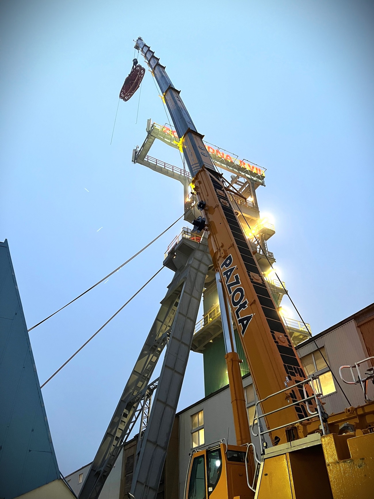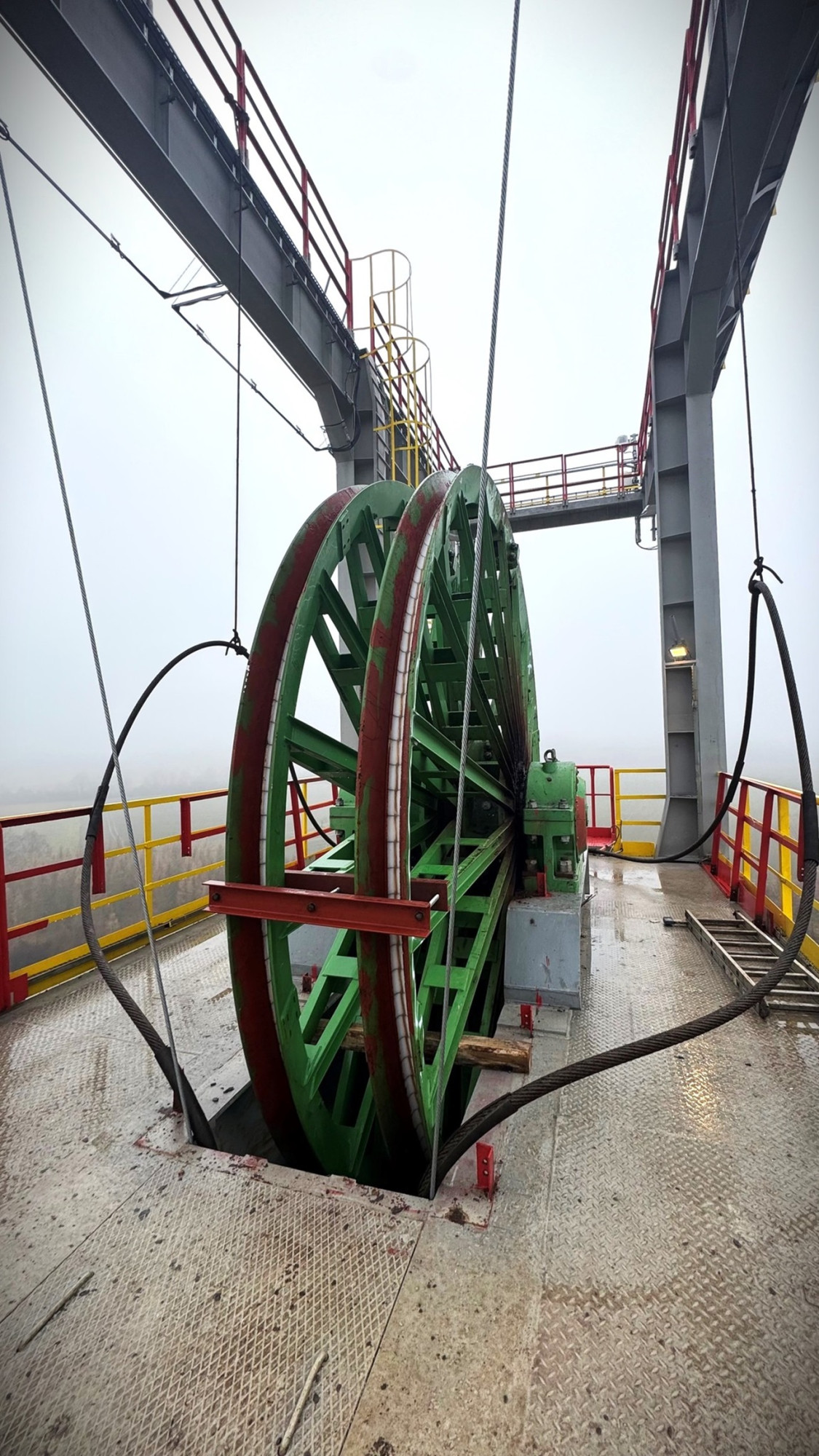 Wymiana 15-tonowych kół linowych o średnicy 5000 mm na szybie R-VII🏗️ to skomplikowana operacja techniczna, której powodzenie gwarantuje bezpieczeństwo i ciągłość transportu na kolejne dekady. Taką właśnie operację techniczną zakończono w ZG Rudna.
