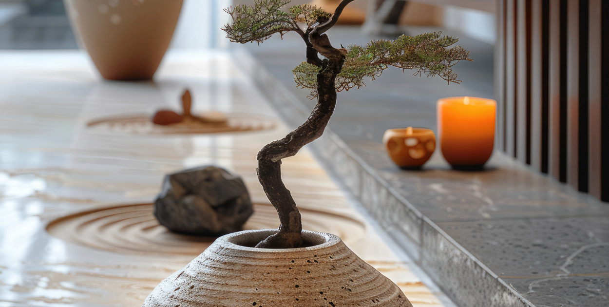Następnie zrównoważ materiały zamiast dokładać dekoracje: drewno i rośliny ocieplą odbiór wnętrza, punktowe światło (czyli „ogień”) doda energii tam, gdzie jej brakuje, kamień i ceramika wprowadzą stabilność, metal i delikatny połysk uporządkują kompozycję, a chłodne akcenty (rola „wody”) wyciszą przeładowane miejsca.