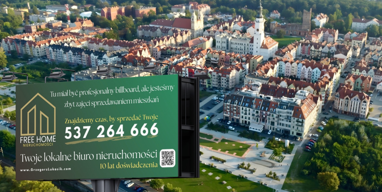 Banery stanęły m.in. przy wjazdach do miasta oraz w widocznych lokalizacjach na terenie Głogowa. Co istotne, nie zawierają one klasycznego wezwania do zakupu ani listy ofert – zamiast tego pojawia się intrygujący komunikat oraz kod QR, który zachęca do samodzielnego sprawdzenia, co kryje się za całą akcją. Ich forma i treść szybko zwróciły uwagę przechodniów oraz kierowców – nie tylko ze względu na estetykę, ale przede wszystkim na przekaz, który wyraźnie odbiega od typowych reklam nieruchomości.