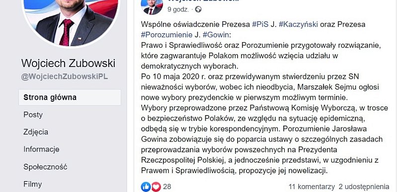 Poseł Wojciech Zubowski (PiS) opublikował na swoim profilu społecznościowym stanowisko-porozumienie swojej partii z Porozumieniem Jarosława