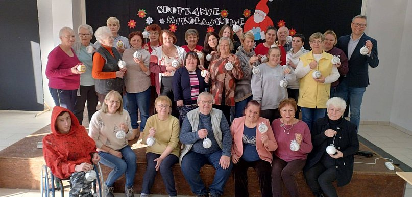 Uczestnicy z radością dekorowali pachnące pierniczki, a następnie własnoręcznie przygotowali świąteczne ozdoby – urocze skrzaty na choinkę oraz efektowne, duże gwiazdy. Spotkanie pełne było uśmiechu, zabawy i twórczego działania.