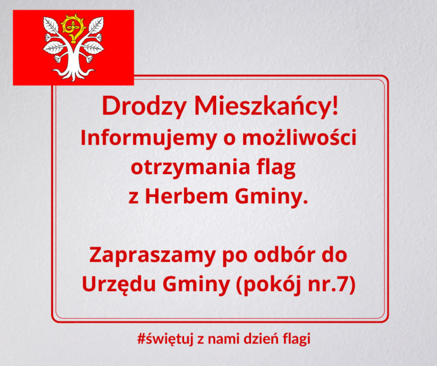 Uroczystość rozpocznie się o godzinie 11. Mieszkańcy wspólnie zasadzą kwiaty, które ułożą flagę. Podobnie białe i czerwone balony, które uczestnicy wypuszczą w niebo. A na słodko poczęstunek „Babeczkami patriotycznymi”. Na uroczystości każdy może otrzymać też flagę z herbem gminy. Już dziś (26.04.) można je też odebrać w urzędzie gminy w pokoju nr 7.