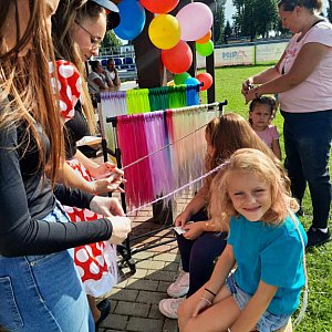 Z tej okazji przygotowano wiele ciekawych atrakcji. Były gry i zabawy zespołowe, malowanie twarzy, strefa baniek mydlanych, dmuchane zamki, brokatowe tatuaże, malowanie farbami na folii i żywa maskotka Hello Kitty.