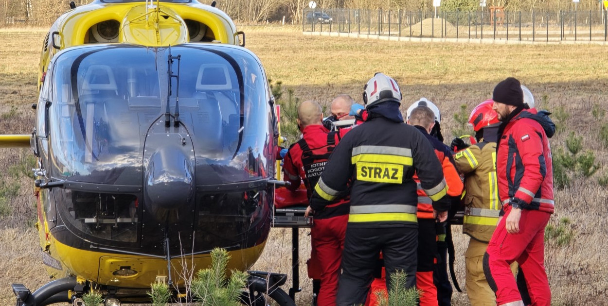 Poszkodowany mężczyzna trafił pod opiekę strażaków z JRG Polkowice, którzy udzielili mu pomocy medycznej, a następnie został przekazany zespołowi ratownictwa medycznego z Polkowic i w końcu ratownikom Lotniczego Pogotowia Ratunkowego, którzy przetransportowali rannego do szpitala w Poznaniu.