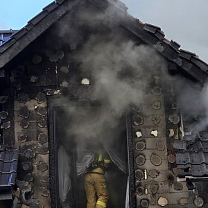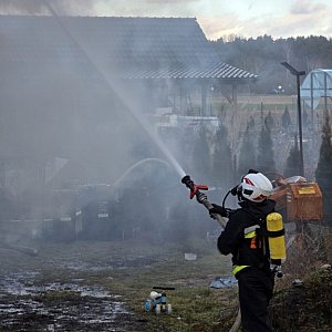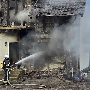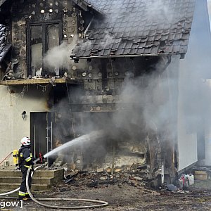 Podczas próby gaszenia przed przybyciem zastępów, poparzeń doznał właściciel posesji
