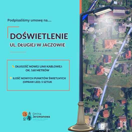 Nowe punkty świetlne zostaną włączone do istniejącej sieci oświetleniowej gminy Jerzmanowa.
