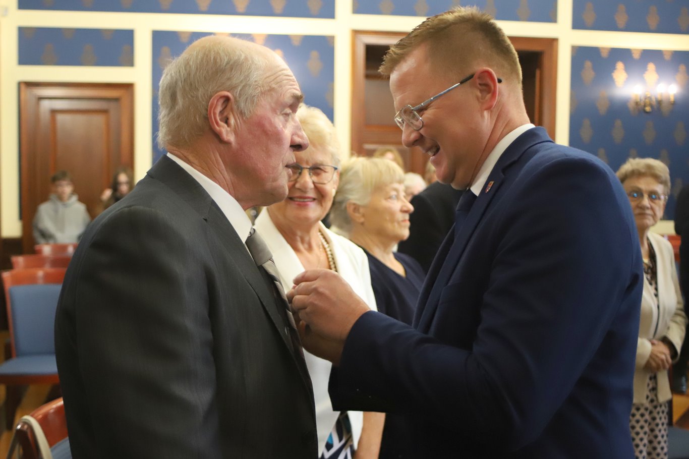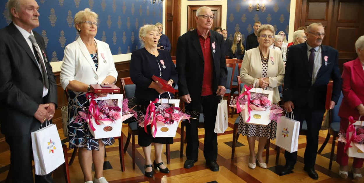 Wójt gminy Głogów Bartłomiej Zimny wręczył jubilatom medale za długoletnie pożycie małżeńskie oraz złożył serdeczne gratulacje i wyrazy uznania.