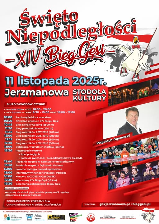 11 LISTOPADA 2024 ŚWIĘTUJ I BIEGAJ Z NAMI PODCZAS Święto Niepodległości i XIV Bieg Gęsi!