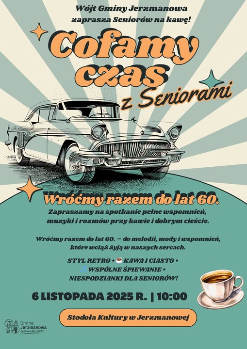 Już w czwartek, 6 listopada 2025 r. o godzinie 10:00, spotkajmy się w Stodole Kultury w Jerzmanowej na wyjątkowym wydarzeniu pn. „𝘾𝙤𝙛𝙖𝙢𝙮 𝙘𝙯𝙖𝙨 𝙯 𝙎𝙚𝙣𝙞𝙤𝙧𝙖𝙢𝙞”!