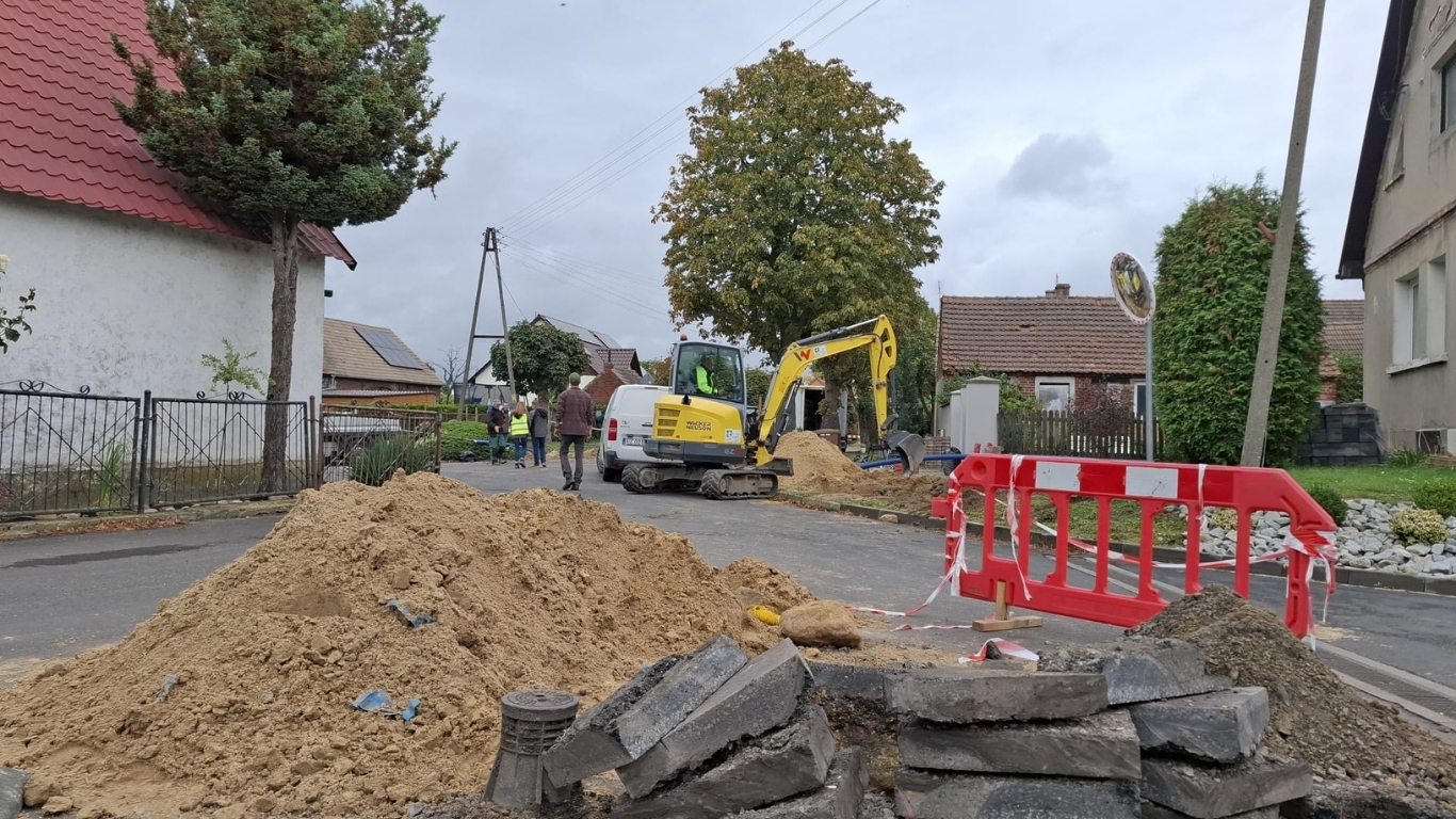 – Przebudowa dotyczy odcinka w rejonie sali wiejskiej i placu zabaw, gdzie równolegle trwa modernizacja sieci wodociągowej. To dobre rozwiązanie – skoro teren i tak jest objęty robotami, można przy tej okazji usprawnić całą infrastrukturę – podkreśla wójt.
