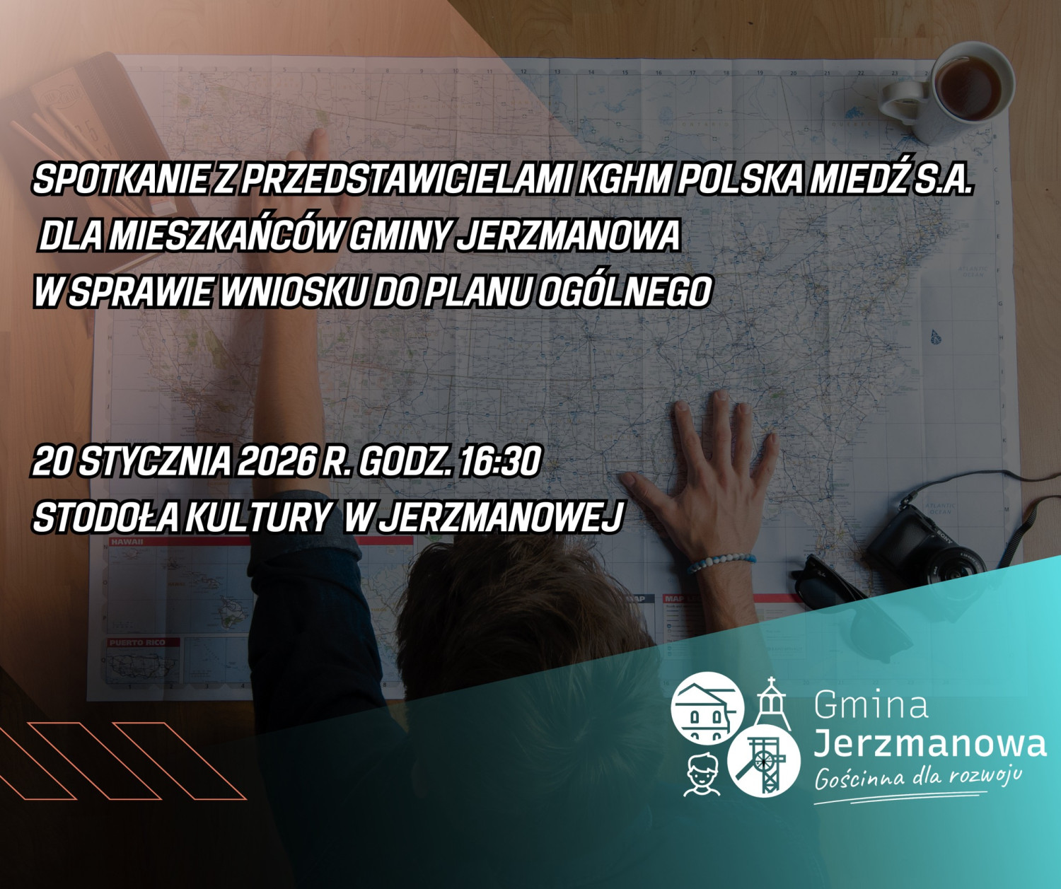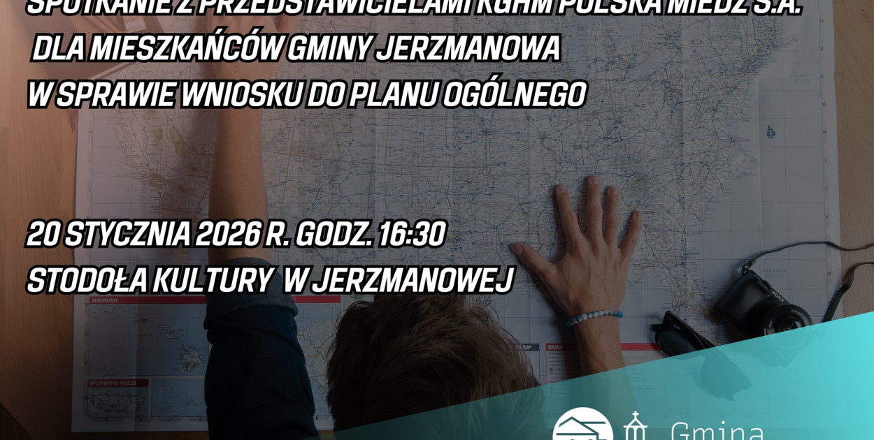 Wójt Anna Obolewicz, informuje o wyznaczeniu terminu spotkania mieszkańców gminy z przedstawicielami KGHM Polska Miedź S.A. – KGHM to My, dotyczącego złożonego wniosku do planu ogólnego gminy Jerzmanowa.