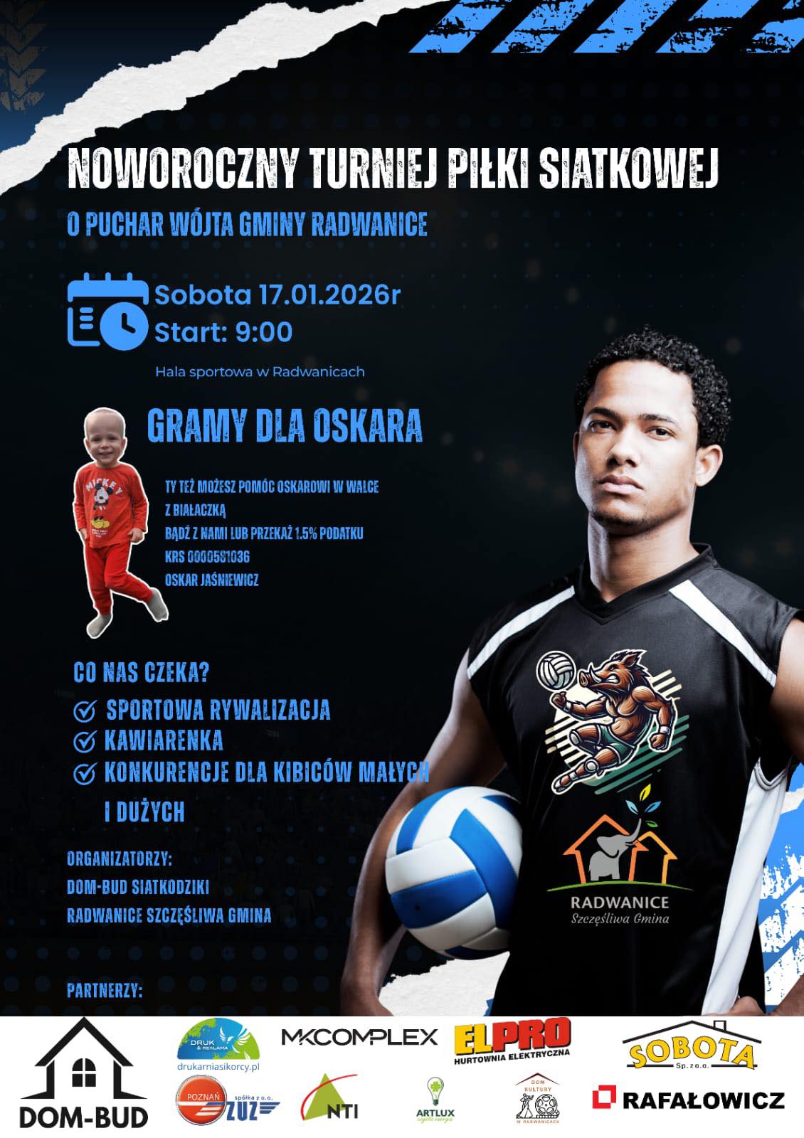 Już w sobotę, 17 stycznia 2026 roku, hala sportowa w Radwanicach stanie się miejscem wyjątkowego wydarzenia. Odbędzie się tam Noworoczny Turniej Piłki Siatkowej o Puchar Wójta Gminy Radwanice, który w tym roku ma szczególny cel – pomoc dla małego Oskara.