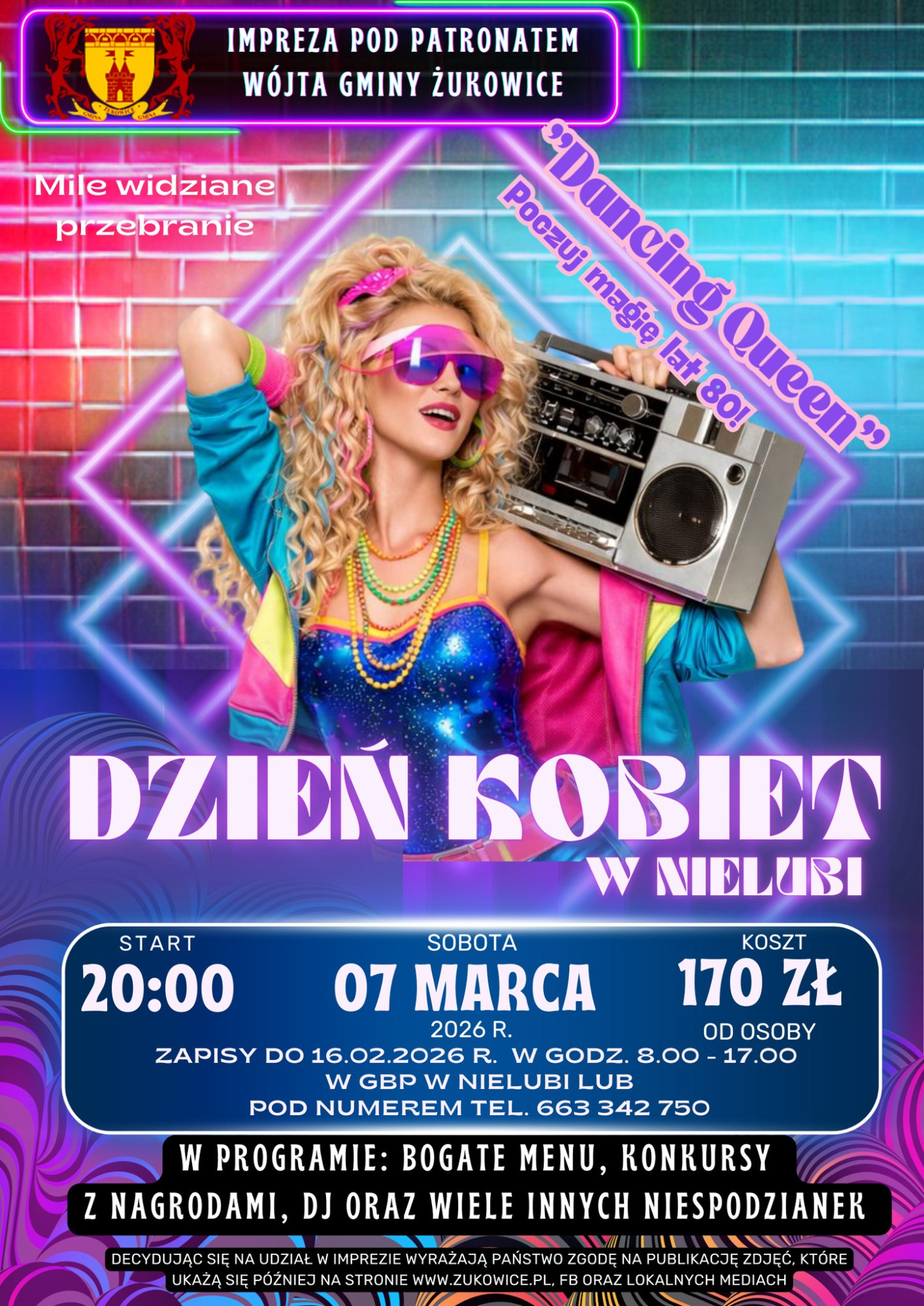 Dzień Kobiet w Nielubi zapowiada się w tym roku wyjątkowo tanecznie. Organizatorzy zapraszają panie na imprezę inspirowaną klimatem lat 80., pełną muzyki, zabawy i niezapomnianych emocji. To propozycja dla wszystkich, które chcą na chwilę oderwać się od codziennych obowiązków i spędzić wieczór w rytmie przebojów sprzed lat.