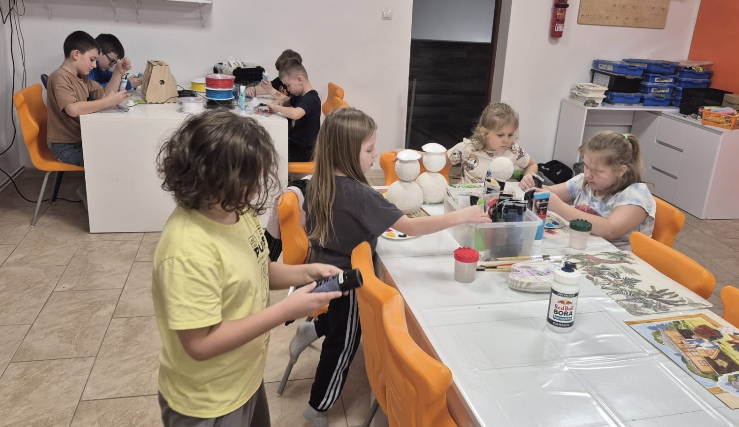 W Borku uczestnicy rozwijali zdolności manualne, tworząc bransoletki oraz szyjąc z filcu misie, pierożki i kebaby. Nie zabrakło także aktywności sportowych – zbijaka i hokeja salowego – oraz zabaw z klockami LEGO, malowania i wyklejanek z guzików.