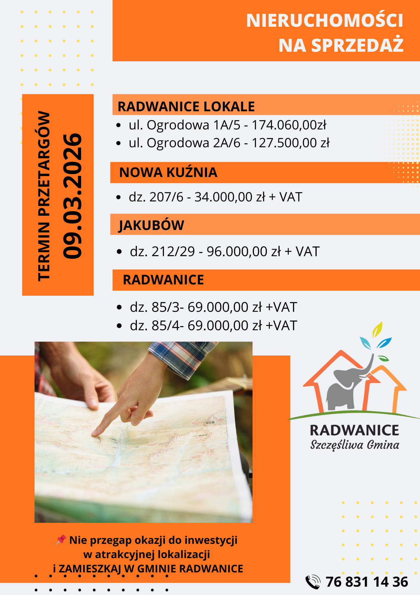 Szukasz lokalu użytkowego lub działki pod budowę domu? To doskonały moment, by spełnić swoje plany. Wójt Gminy Radwanice ogłasza przetargi na sprzedaż nieruchomości oraz lokali użytkowych zlokalizowanych na terenie gminy.