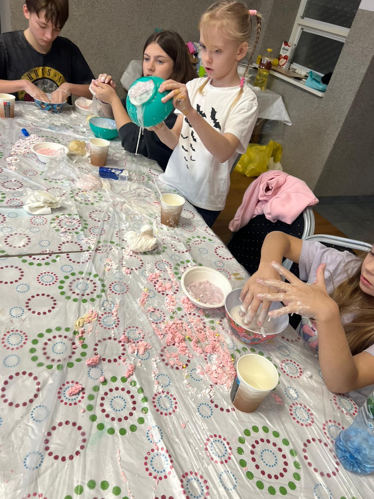Sporo emocji dostarczyły także warsztaty plastyczne prowadzone przez Ewelinę Płócienniczak, podczas których zwykłe trampki zamieniły się w kolorowe, unikatowe dzieła sztuki. Wspólne budowanie małej osady inspirowanej Bullerbyn było okazją do integracji i współpracy, a zwieńczeniem tygodnia stał się słodki dzień z goframi, cake popsami oraz kreatywnymi kwiatami z pianek i żelków.