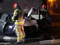 W Głogowie spłonęło BMW. Ucierpiał też pobliski budynek