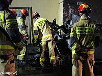 W Głogowie spłonęło BMW. Ucierpiał też pobliski budynek