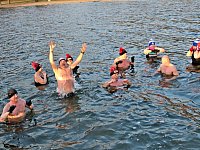Podczas mistrzostw świata w lodowym pływaniu kilka osób weszło do wody z... rybami na głowach. Właśnie w ten sposób manifestowali sprzeciwiając