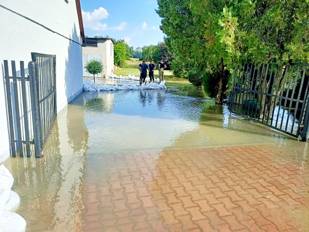 Do awarii doszło w miejscowości Żuków w gm. Polkowice. Od rana trwało pompowanie wody oraz zabezpieczanie budynków workami z piaskiem.