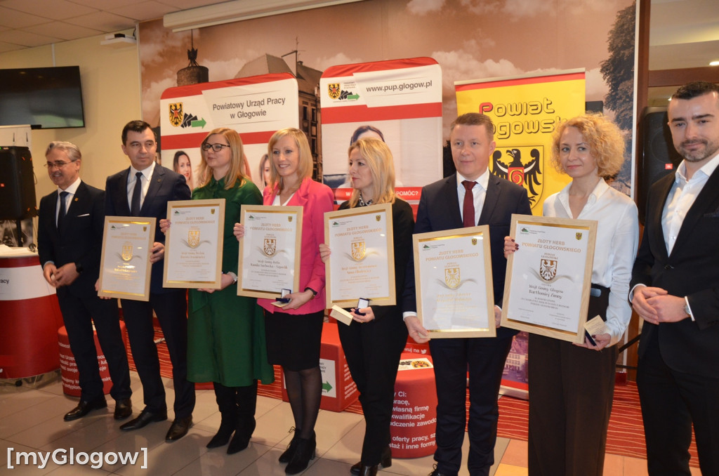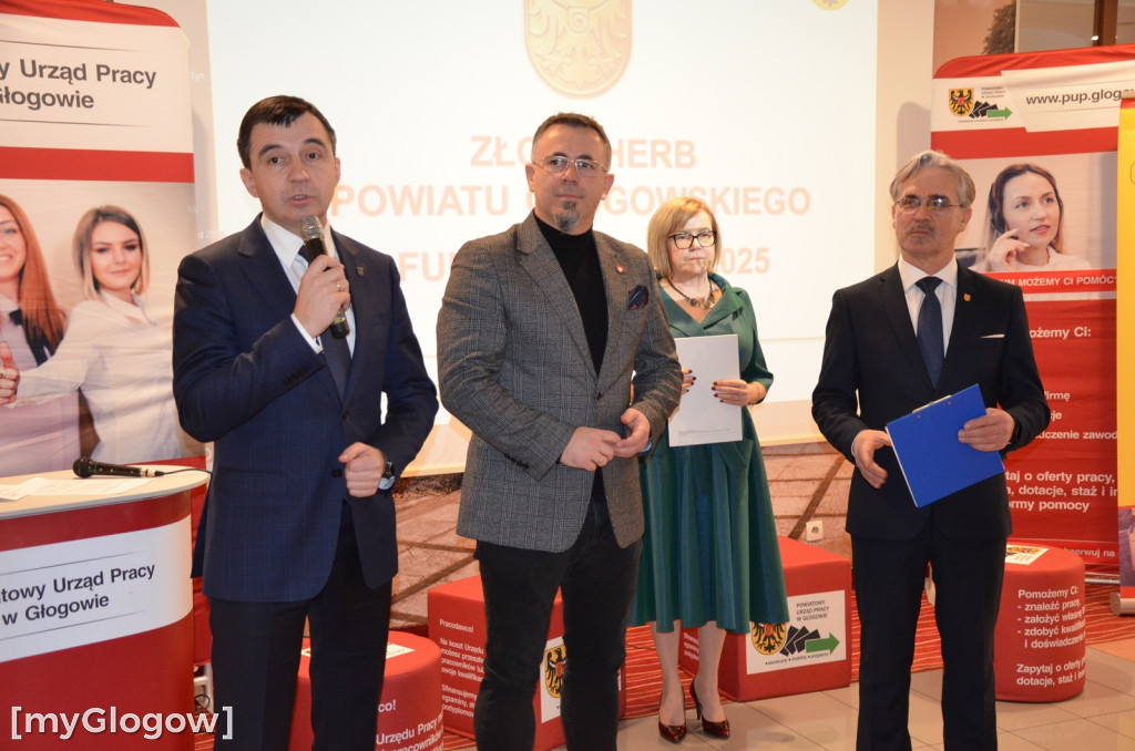 Nagroda Złote Herby Powiatu Głogowskiego 2025 dla przedsiębiorców branży kamieniarskiej i samorządów. Uroczystość wręczenia w Hotelu Qubus w Głogowie (29.01.).