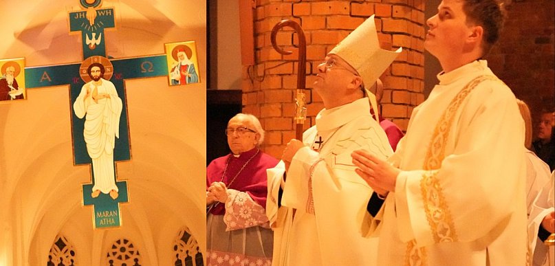 W głogowskiej kolegiacie poświęcono dziś 7-metrowy krzyż z dwustronnym wizerunkiem Chrystusa.